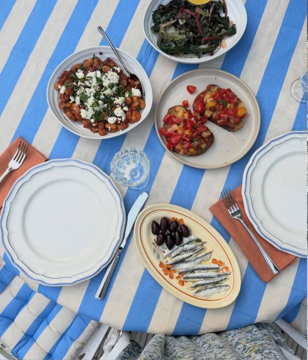 Röndóttur borðdúkur úr lífrænni bómull frá sænska merkinu Midnatt