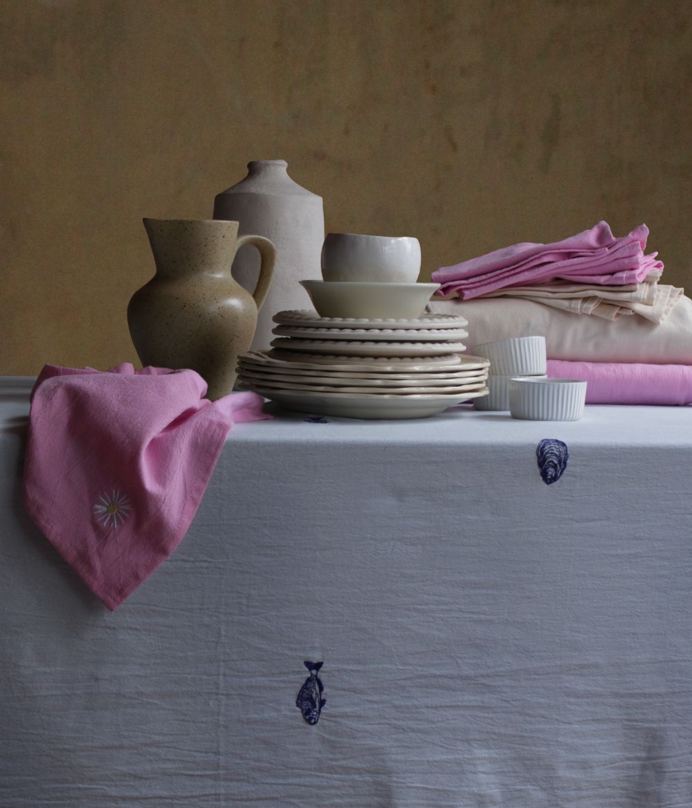 Bróderaður borðdúkur úr lífrænni bómull frá sænska merkinu Midnatt