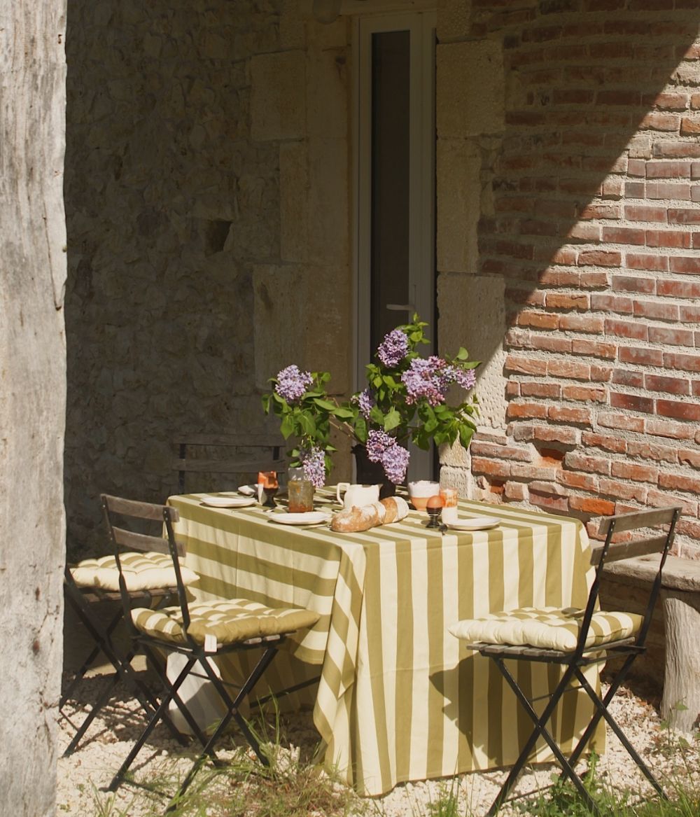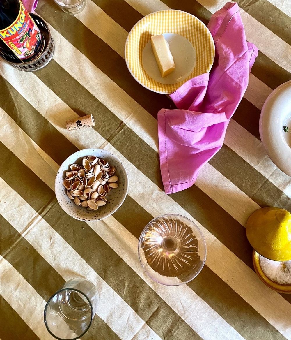 Röndóttur borðdúkur úr lífrænni bómull frá sænska merkinu Midnatt