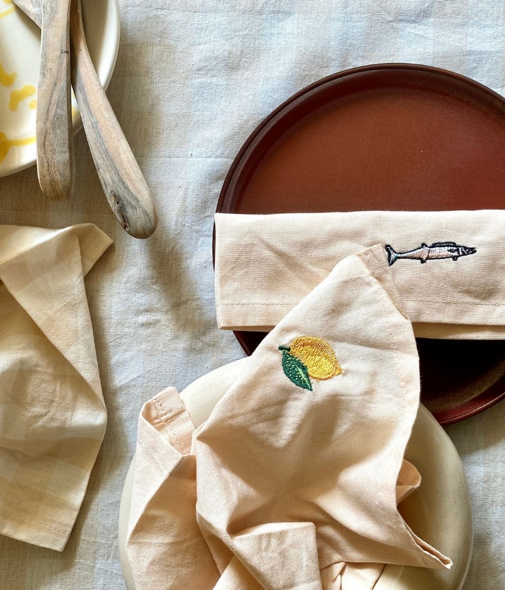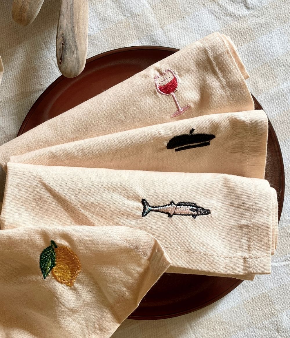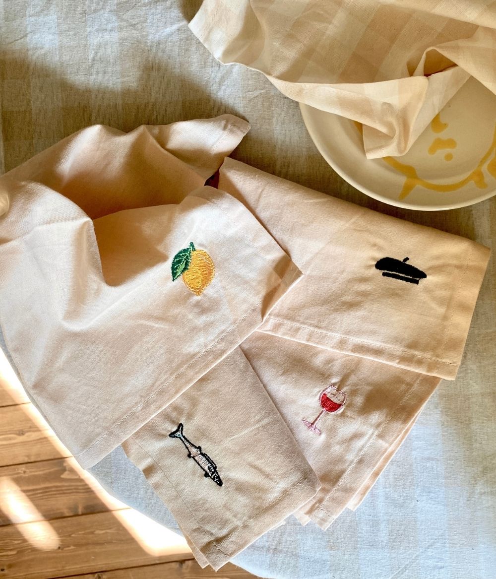Bróderaðar tauservíettur úr lífrænni bómull frá sænska merkinu Midnatt.