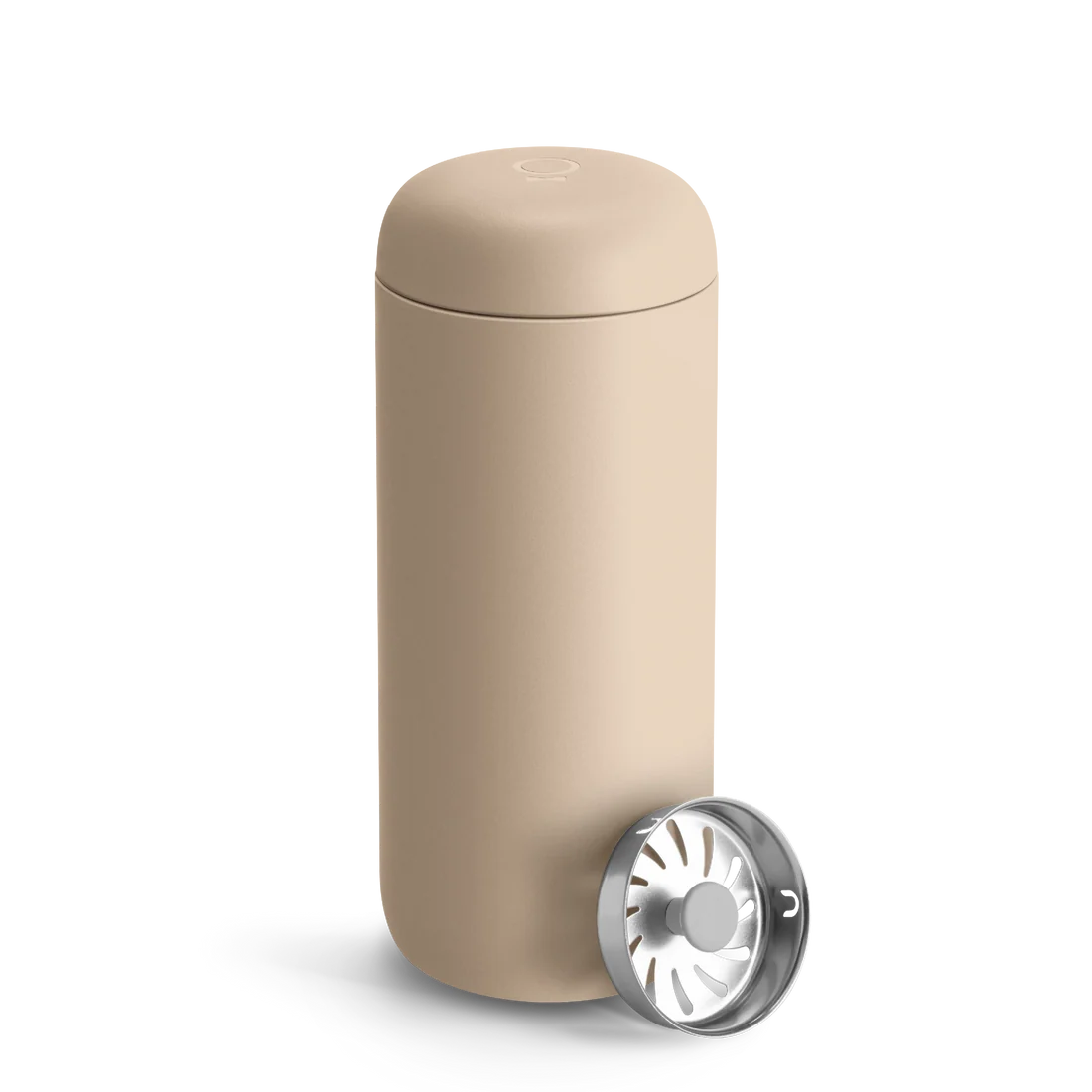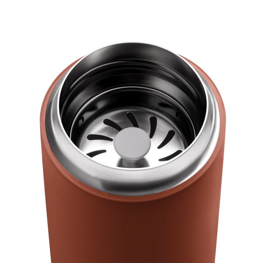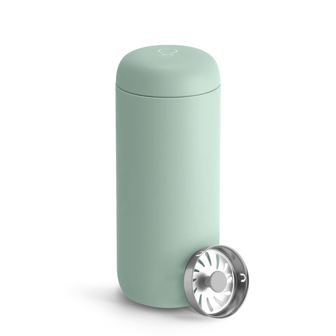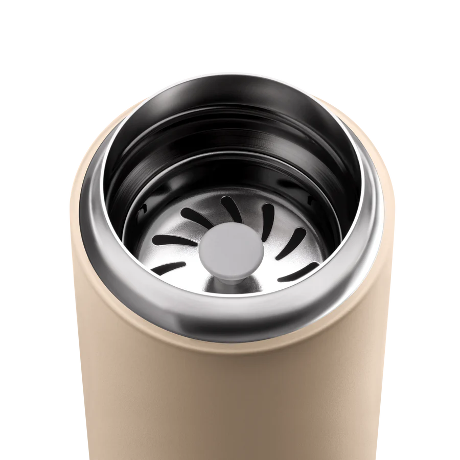 18/8 ryðfrítt stál, BPA frítt plastlok. Húðað að innan með keramík sem heldur bragðprófíl drykkjarins réttum og kemur í veg fyrir að málmbragð smitist í drykkinn.