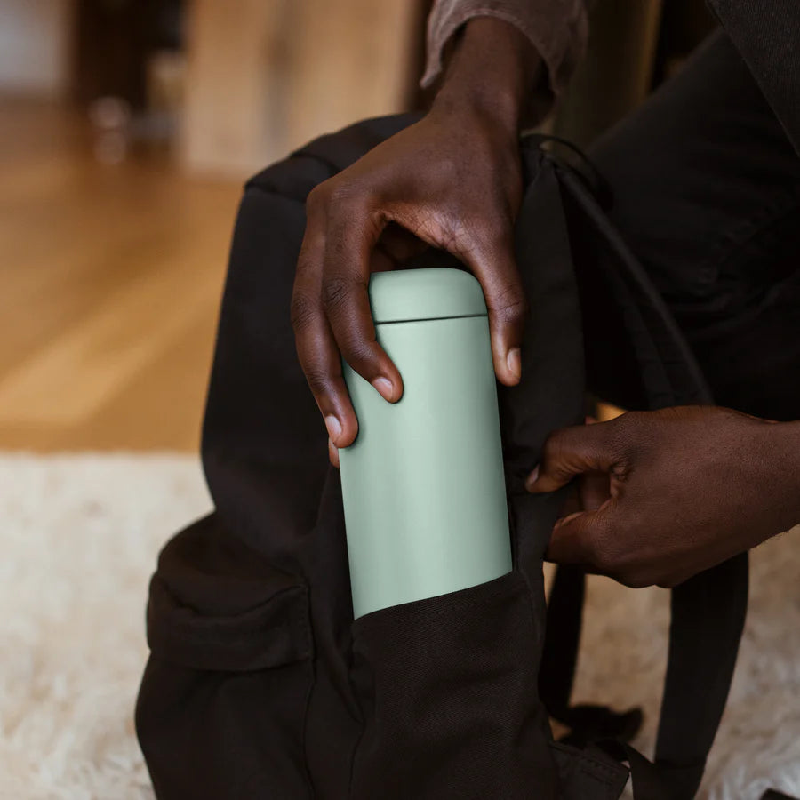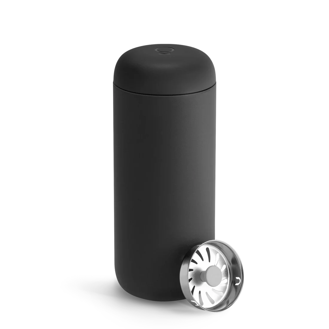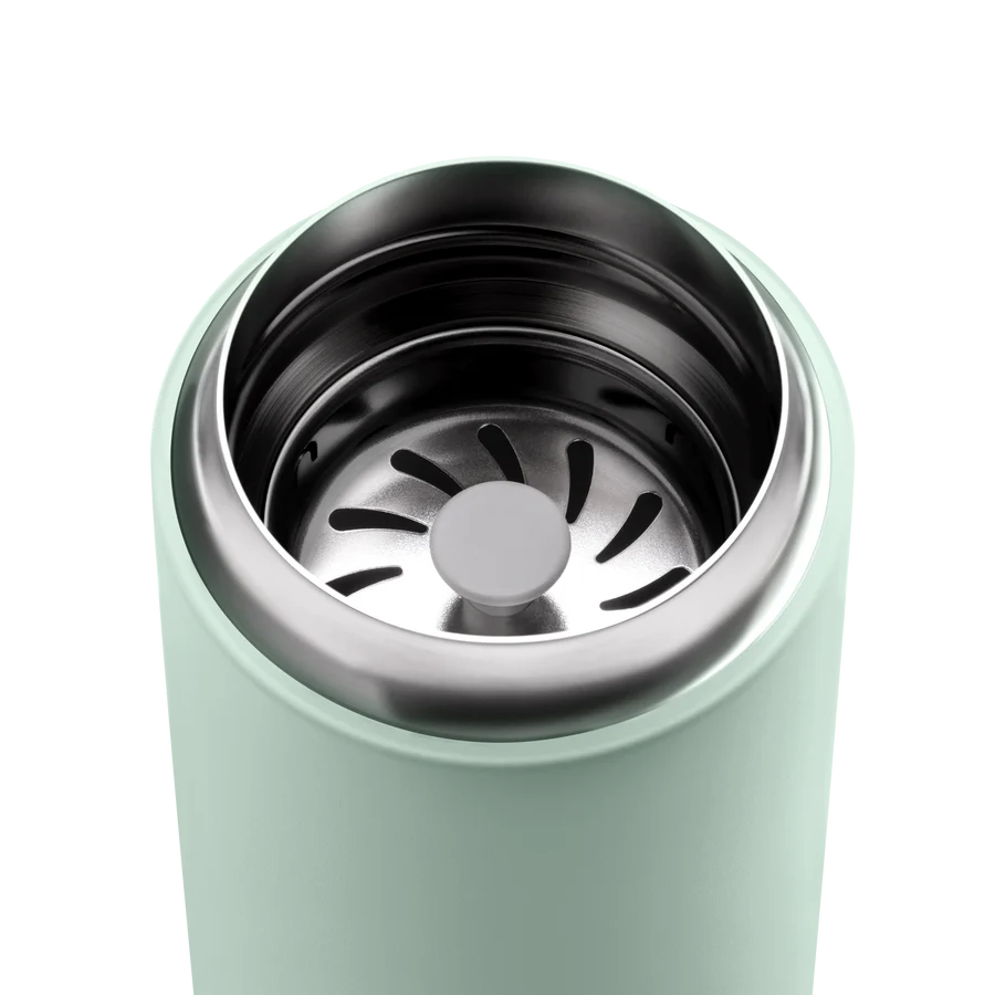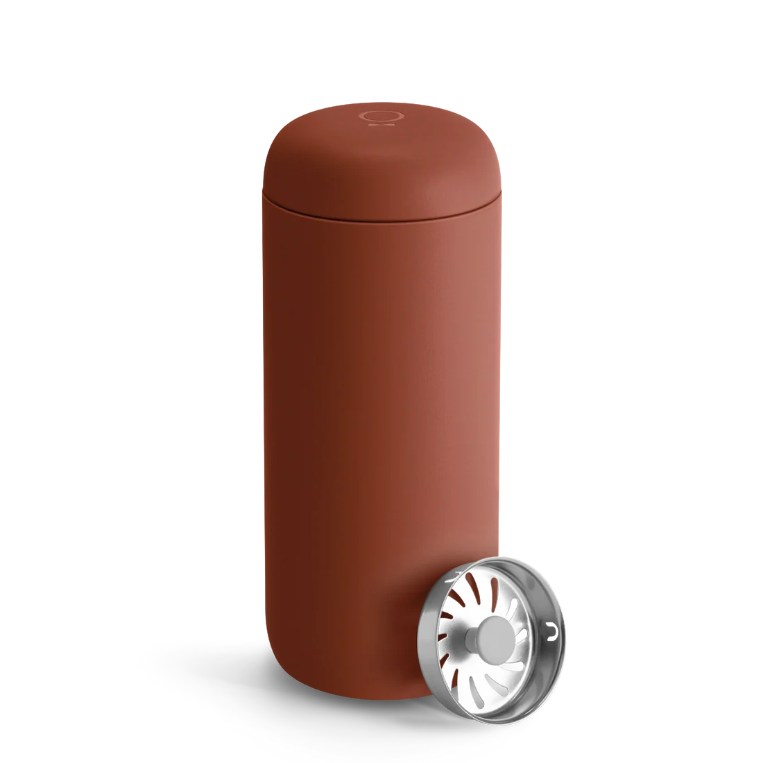 18/8 ryðfrítt stál, BPA frítt plastlok. Húðað að innan með keramík sem heldur bragðprófíl drykkjarins réttum og kemur í veg fyrir að málmbragð smitist í drykkinn.