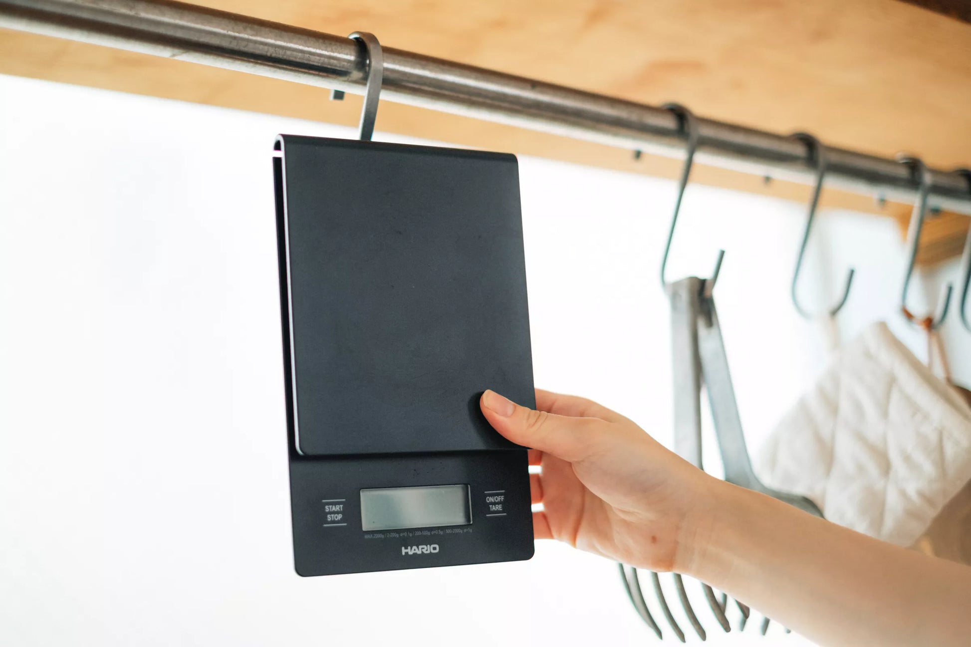 Nákvæm vigt frá Hario, tilvalin fyrir hæga uppáhellingu þar sem hún mælir bæði þynd og tíma.