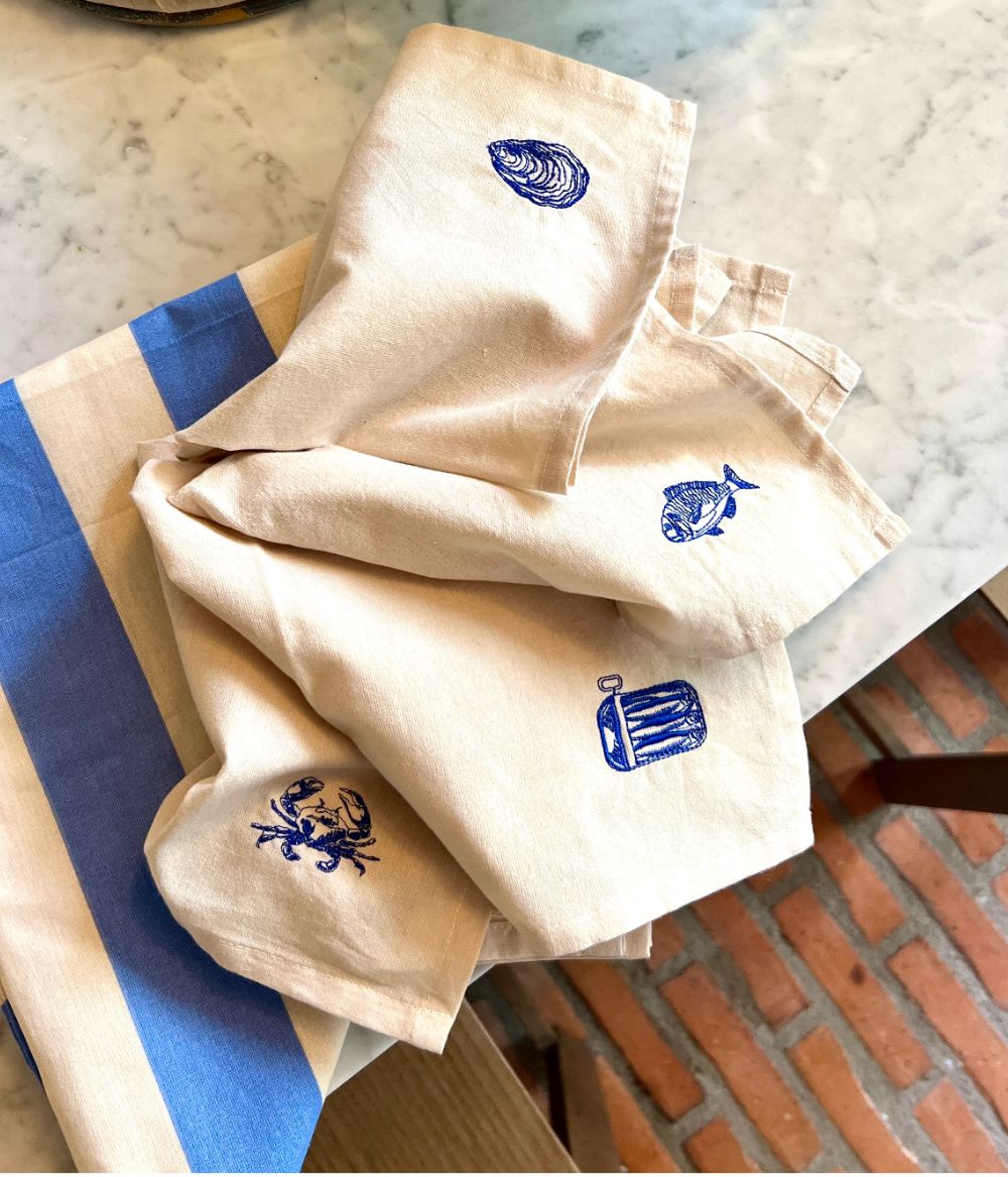 Bróderaðar tauservíettur úr lífrænni bómull frá sænska merkinu Midnatt.