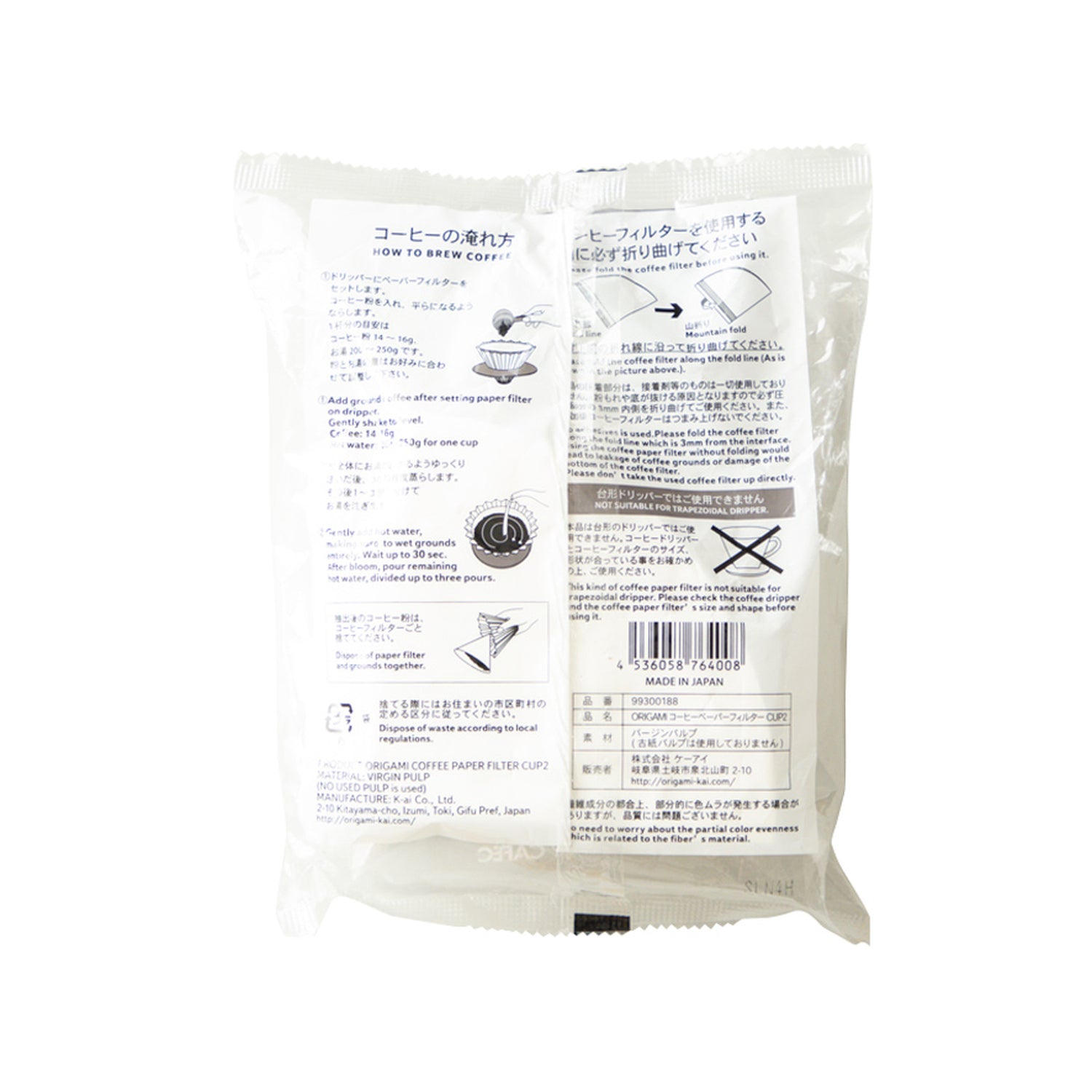Pappírsfilterar fyrir Origami uppáhellingu, stærð M