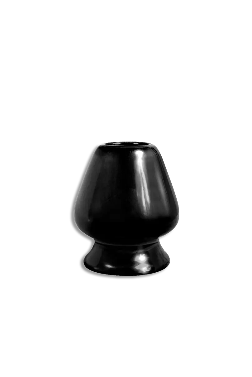 Standur frá Moya úr steinleir með svörtum glerjung fyrir matcha bambuspísk.